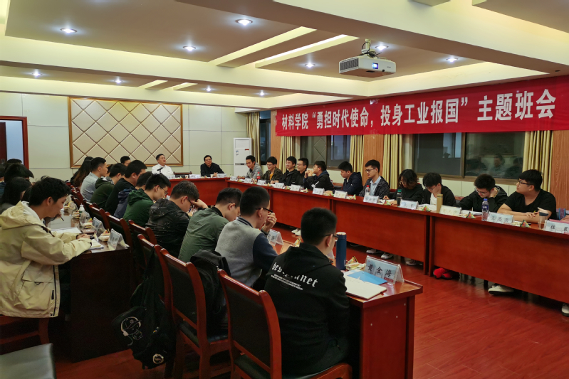 ,参加金属创新实验17-1班组织开展的“勇担时代使命,投身工业报国”主题班会,详细了解同学们的学习生活情况,并与同学们亲切交流。