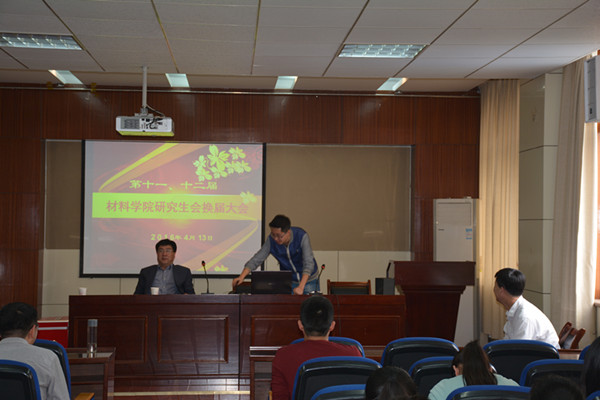 4月13日下午五点,材料学院第十二届研究生会成立暨第十一届研究生会优秀干部干事表彰大会在材料楼601会议室成功举行。出席此次大会的有材料学院党委书记程继贵、研究生辅导员何顺荣和研究生会全体成员。