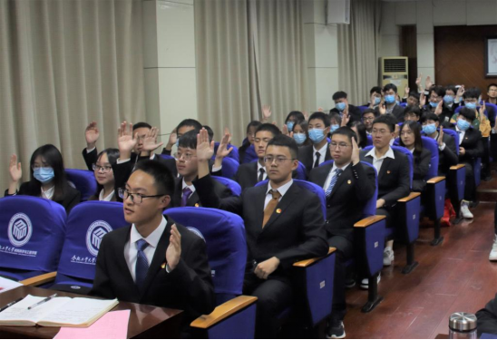 大会在高昂的共青团团歌中胜利闭幕。会议结束后,全体学生代表共同学习了习近平总书记在纪念辛亥革命110周年大会上的重要讲话精神,坚定理想信念,牢记初心使命。