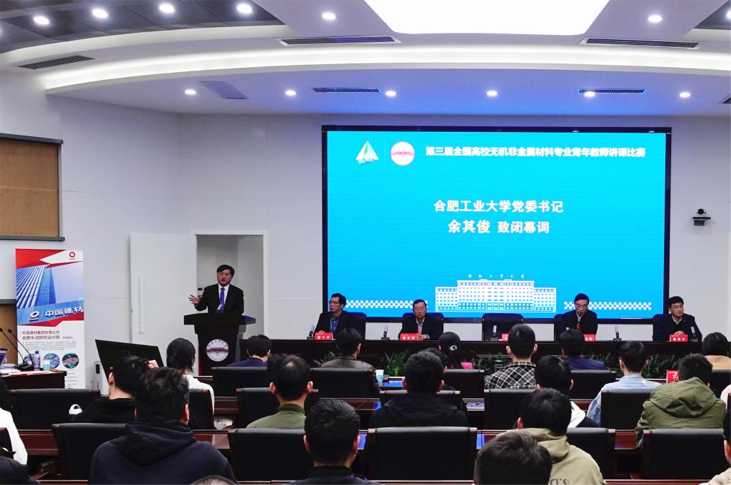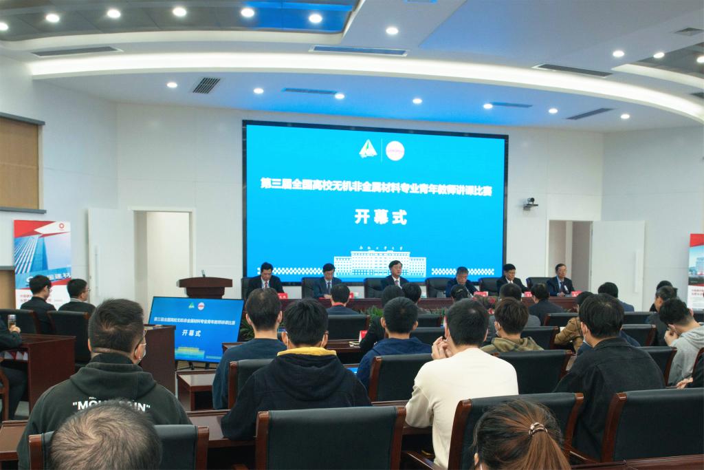 主办,合肥水泥研究设计院有限公司、华南理工大学、武汉理工大学、北京工业大学和南京工业大学协办。比赛由包含十余位教育部高等学校材料类专业教学指导委员会委员在内的,36位高校和行业教授、专家担任评委。吸引了来自同济大学、华南理工大学、西北工业大学、东南大学、武汉理工大学等50余所高校的近百名无机非金属材料相关专业的青年教师参赛。