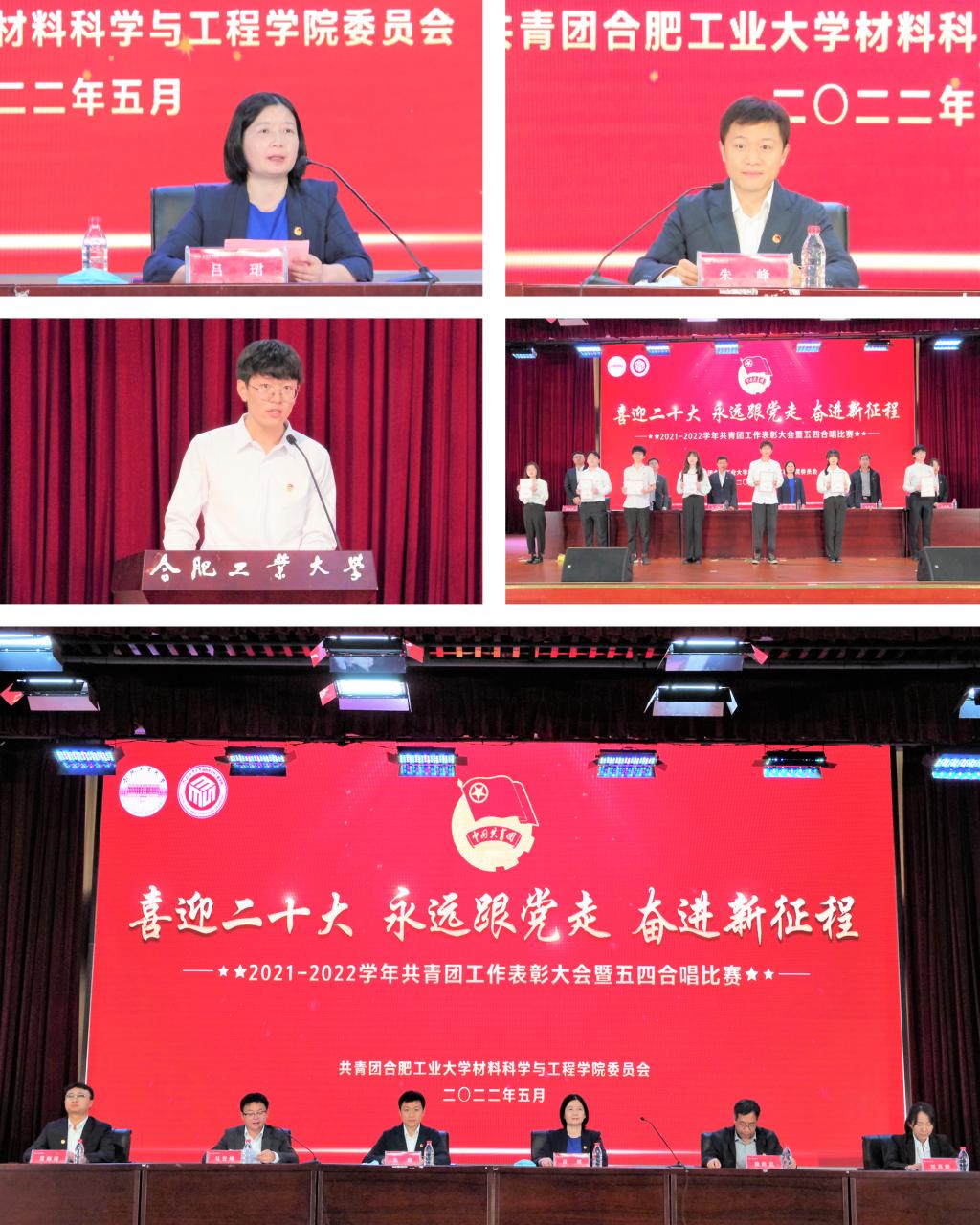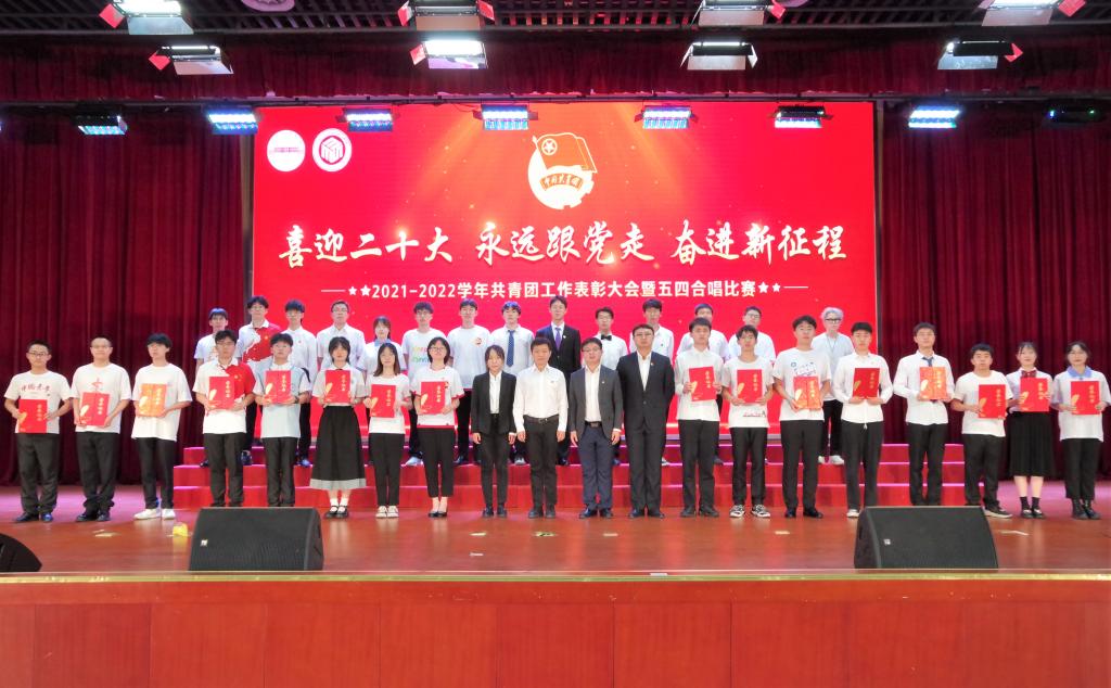 “喜迎二十大 永远跟党走 奋进新征程”2021-2022学年共青团工作表彰大会暨五四合唱比赛在翡翠湖校区科教楼大报告厅举行。学院党委和团委相关负责人、各年级辅导员和获奖学生代表、2020级、2021级全体学生参加了本次活动。