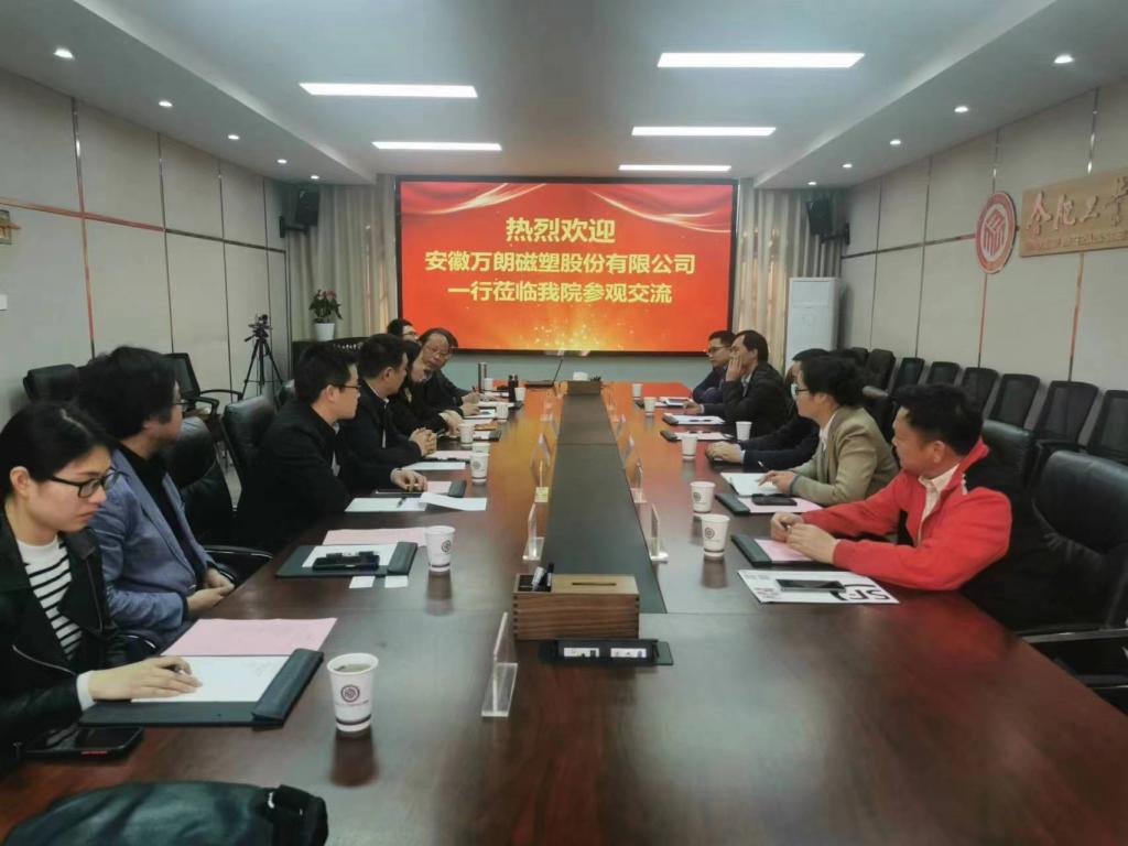 陈雨海介绍了万朗磁塑的基本情况以及技术需求,指出企业的高质量发展离不开人才,万朗磁塑与材料学院在新材料、新技术等发展方向上高度契合,双方在项目研发、人才培养、学生就业等方面可进一步加强合作。