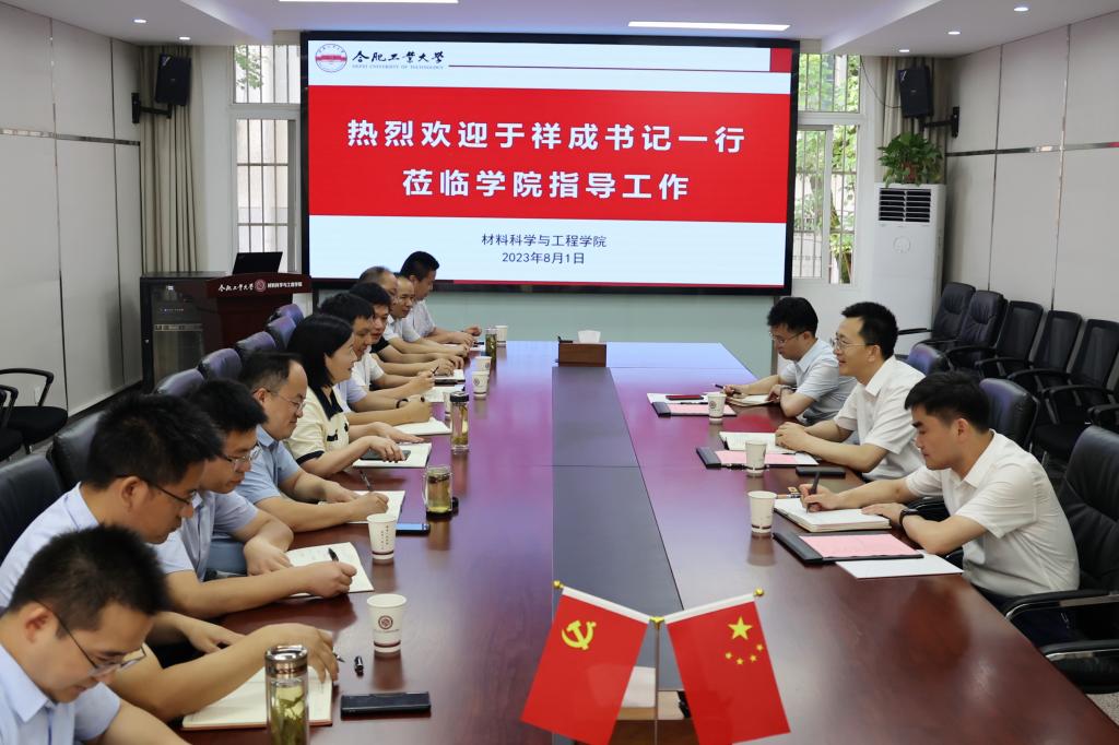 2023年8月1日上午,校党委书记于祥成、党委副书记严福平一行来到材料学院调研指导工作。
