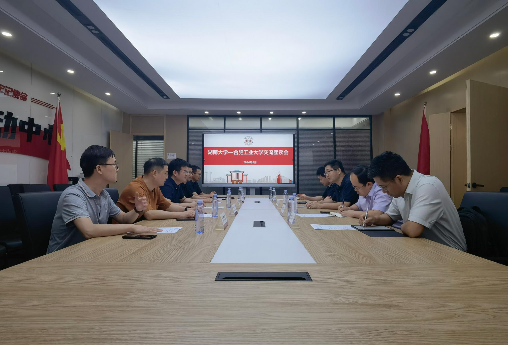 党委书记李丰涛主持调研座谈会。李丰涛对材料学院一行表示热烈地欢迎,他介绍了湖南大学材料学院基本情况,分享了党建引领学院事业高质量发展的宝贵经验和创新举措。武国剑对湖南大学材料学院热情接待表示感谢。他介绍了本次调研的主题和背景,并从学院发展历程、人才培养特色、科学研究成果等方面介绍了学院的总体情况。他强调,希望通过本次调研学习,进一步加强交流合作,促进双方学院各项事业高质量发展再上新台阶。座谈会上,双方围绕党建“一融双高”、高层次人才引育、科研资源优化、科研设备共享管理、科技成果转化应用等关键主题展开交流研讨。