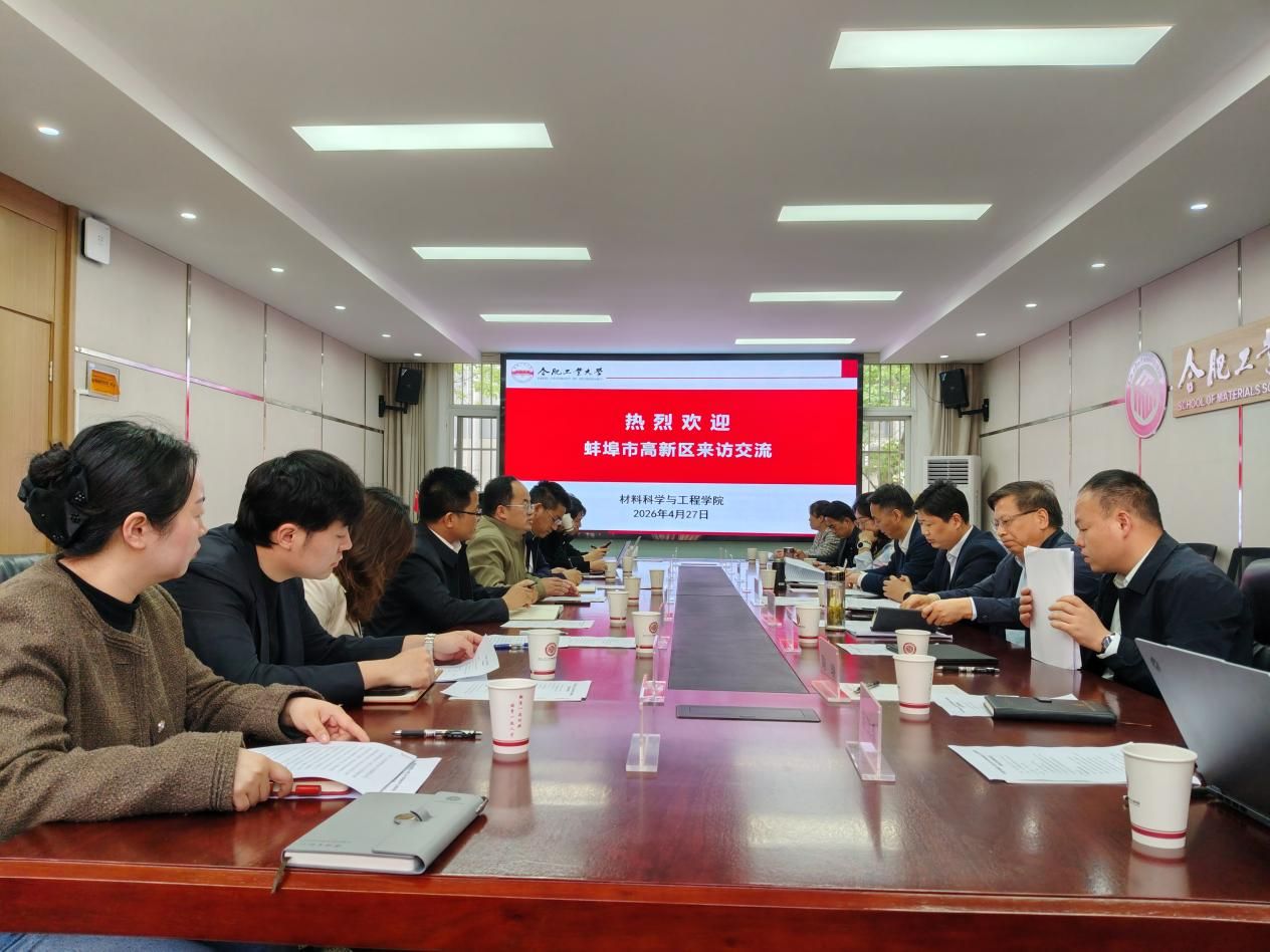 院长罗来马对蚌埠高新区一行来访表示欢迎,并系统介绍了学院在学科建设、科研创新、成果转化及师资队伍等方面的整体情况。蚌埠高新区党工委委员、组织部部长杨富刚表示,高新区高度重视与合工大材料学院的战略合作,将持续优化创新生态、完善政策支持、强化要素保障,为高校科技成果转化提供全周期服务,推动更多优质项目在蚌埠落地见效、做大做强。