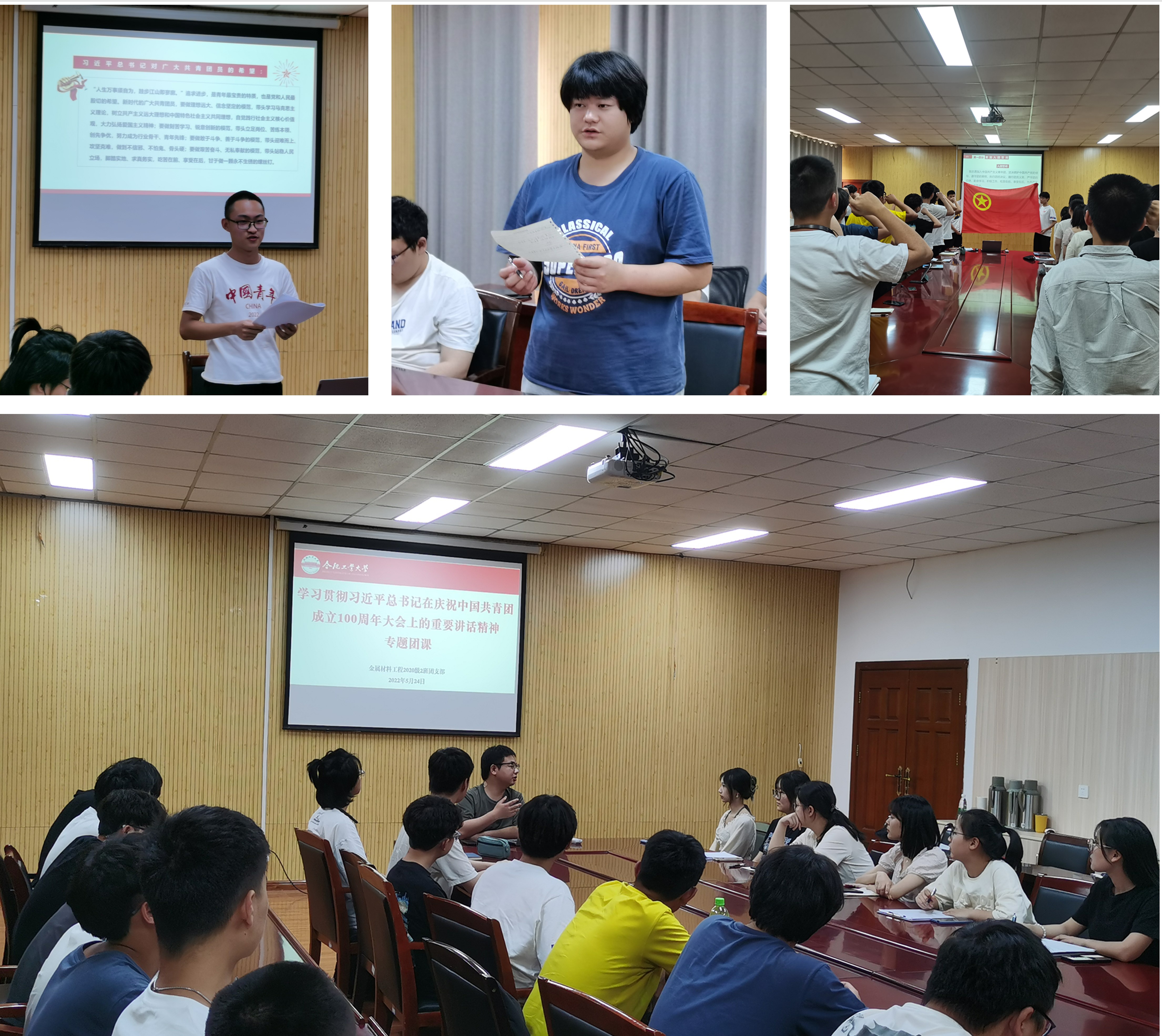 在翡翠湖校区综合楼第一会议室开展“不忘初心跟党走,青春建功新时代”主题团课。学院团委相关老师、金属材料工程2020级2班团支部全体同学参与本次团课。