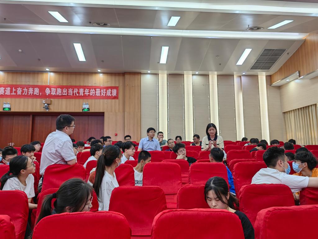 在翡翠湖校区科教楼二楼报告厅开展专业认知强化教育专题报告会暨专业分流交流会。吴玉程教授、学院相关负责人、各专业教授代表、学院2021级全体同学参与活动。
