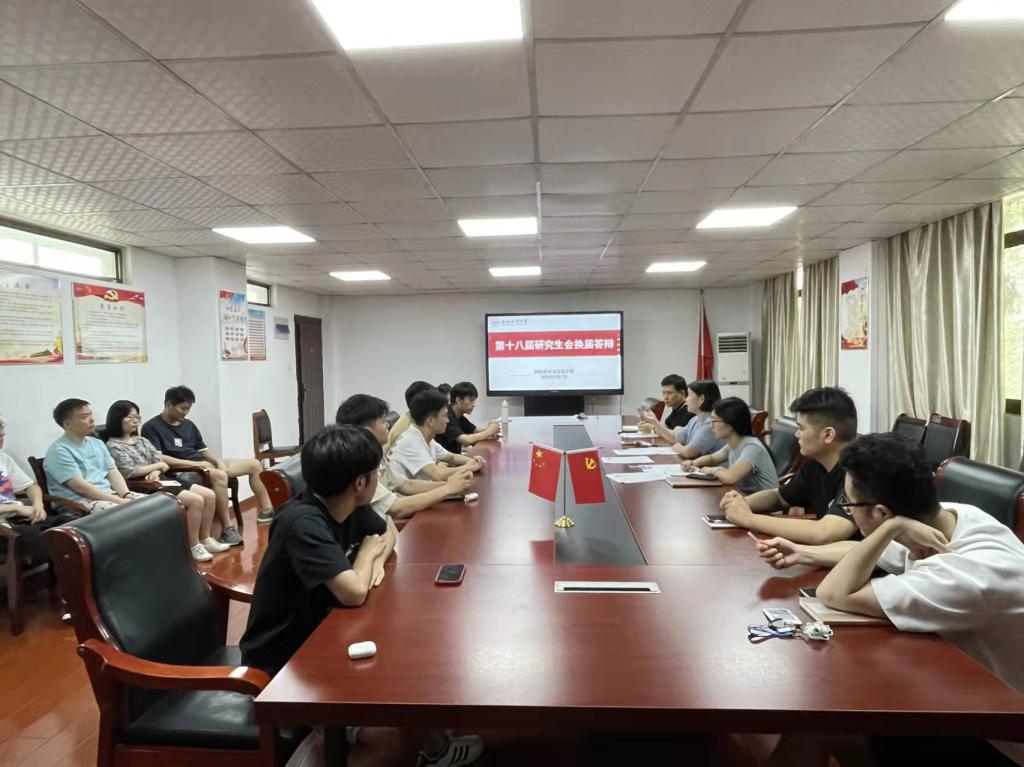 7月7日上午,材料学院第十八届研究生会换届仪式在学院党员之家会议室顺利召开。学院党委书记吕珺、党委副书记兼纪委书记朱峰、研究生辅导员及研究生会相关负责同学参加此次换届大会。