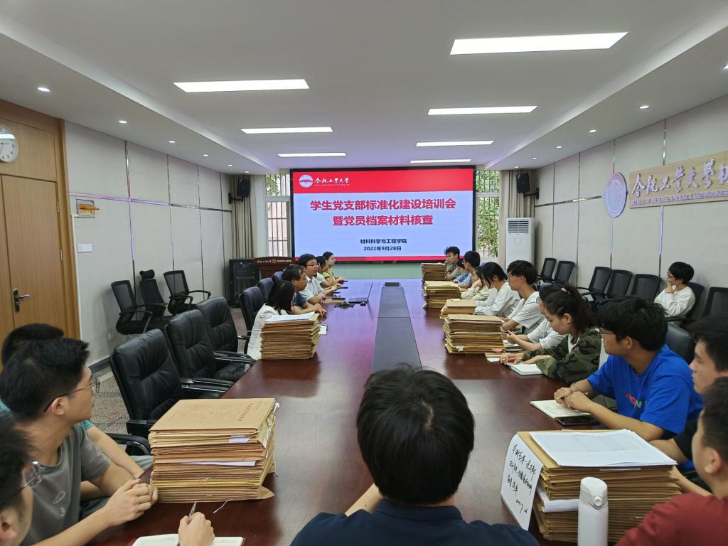 在材料楼综合服务中心210组织开展学生党支部标准化建设培训会暨党员档案材料专项核查工作。学院相关负责人、学生党支部全体支部委员参加本次会议。