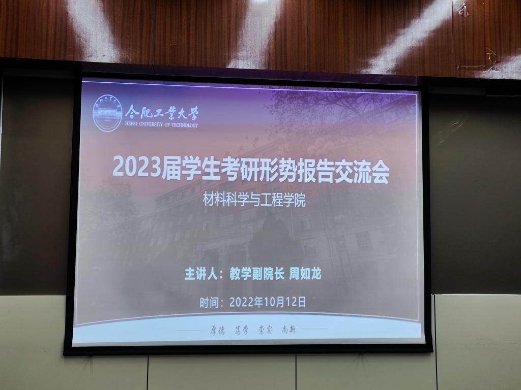 10月12日下午,材料学院于材料楼601报告厅召开了2023毕业生考研形式报告交流会。本期活动邀请了材料学院教学副院长周如龙老师作2023年考研形势分析报告并就报考研究生注意事项进行指导,毕业班学生及相关负责老师参与本次会议。