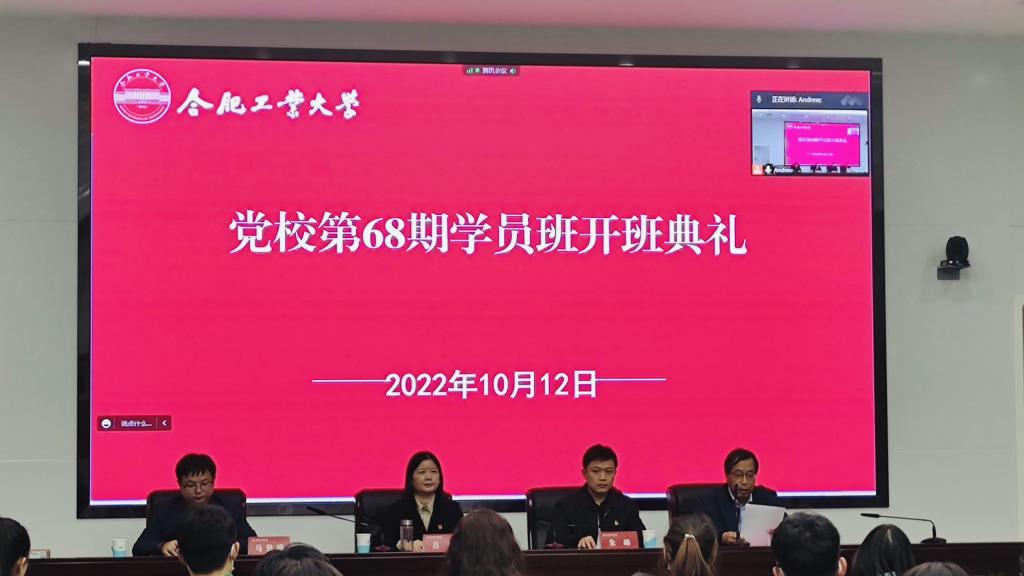 分党校第68期大学生入党积极分子班开班典礼暨党课第一讲在屯溪路校区学术会议中心三楼报告厅顺利举行。本次党校开班同时在屯溪路校区材料楼601会议室、材料楼综合服务中心210和翡翠湖校区科教楼第五会议室设置了三个分会场。学院党委、分党校相关负责人、班主任及50名学员代表在主会场参加了仪式,其余学员在分会场参会。