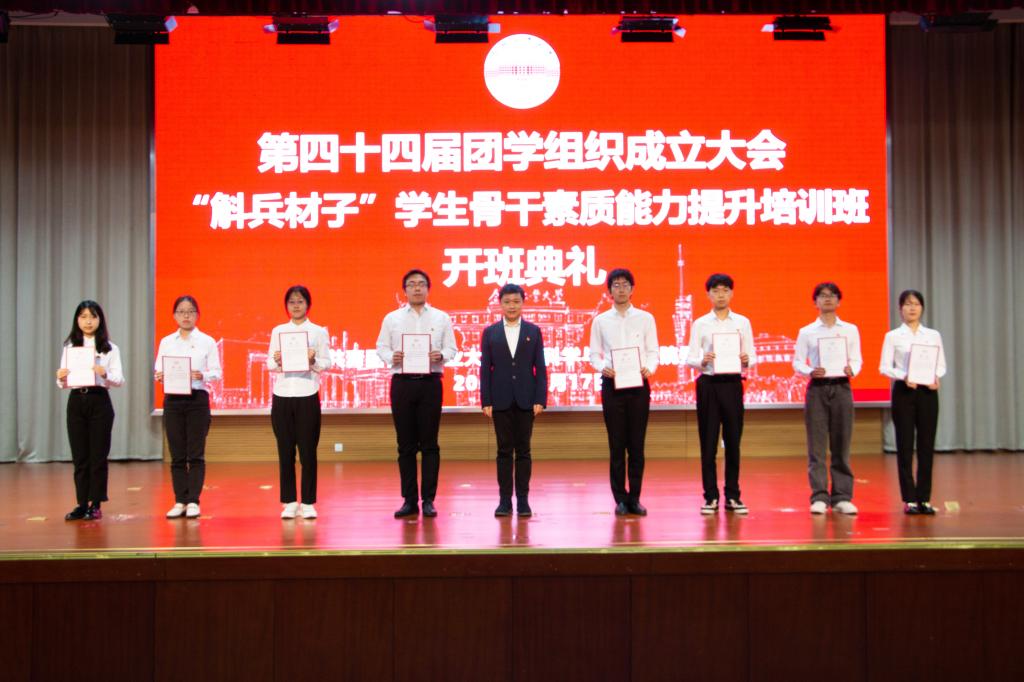 于翡翠湖校区召开第四十四届团学组织成立大会暨“斛兵材子”第二期学生骨干素质能力提升专题培训班开班典礼,大会设科教楼二楼报告厅主会场及教学楼分会场。学院党委和学院团委相关负责人,辅导员以及第四十四届团学组织全体学生干部、干事和2021级、2022级全体班级学生干部共计190名学员参加活动。