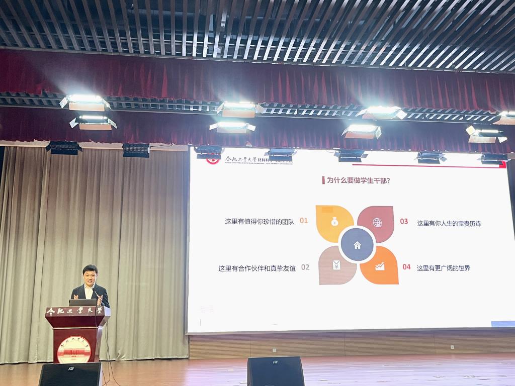 典礼结束后,朱峰为培训班全体学员做了题为“如何做一名优秀学生干部?”的专题培训报告。朱峰围绕学习党的二十大报告,结合学生特点,从为什么要做学生干部、学生骨干的三种身份以及付出与收获等方面对学生骨干提出了要求与标准、期许与展望,他表示学生骨干要时刻牢记学生这一首要身份,明确个人职责定位、目标定位、发展定位,培养高尚品格的同时担负起学生工作职责,努力成为有理想、敢担当、能吃苦、肯奋斗的新时代好青年。