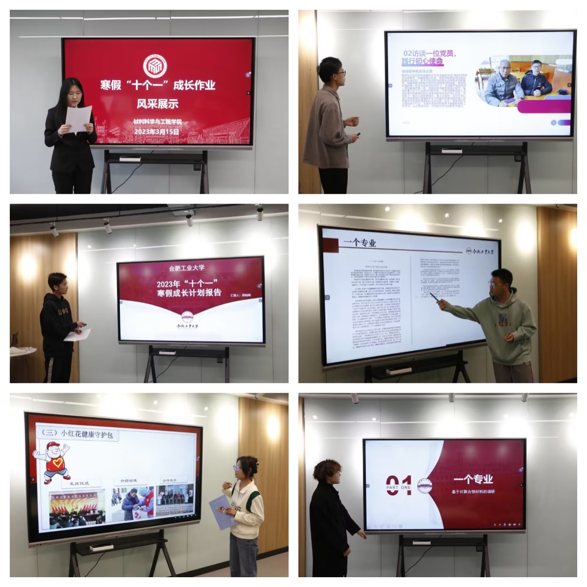 ,为家乡人民,家乡同学搭建起与工大之间有效沟通的桥梁;材料类22-3班的四名同学组成团队,精心制作了一个展示他们与老党员面对面访谈的精彩的视频;材料物理22-1班赵宝华同学从学习雷锋精神,撰写家书,参加劳动等方面展示了他的寒假作业成果,讲述了寻访一所贫困家庭的经历与收获。