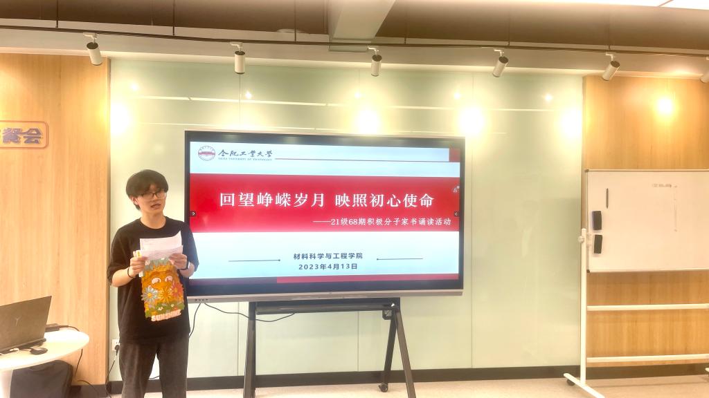 在翡翠湖校区二号学生社区沙龙空间举办“回望峥嵘岁月,映照初心使命”主题家书诵读分享会,2021级第68期发展对象班、积极分子班学员参会。