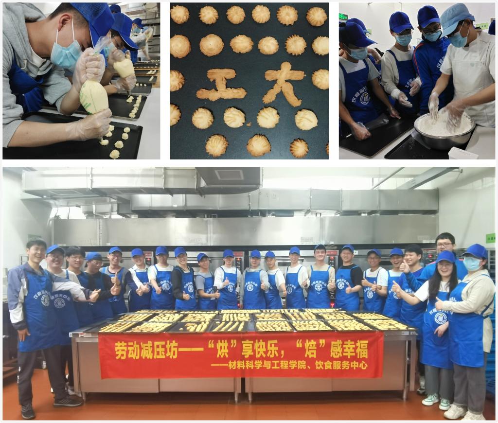、总务部饮食服务中心在屯溪路校区饮食新大楼404会议室、西点加工间联合开展了第一期“劳动减压坊”主题实践活动。材料成型及控制工程2020级1班20名同学参加活动。