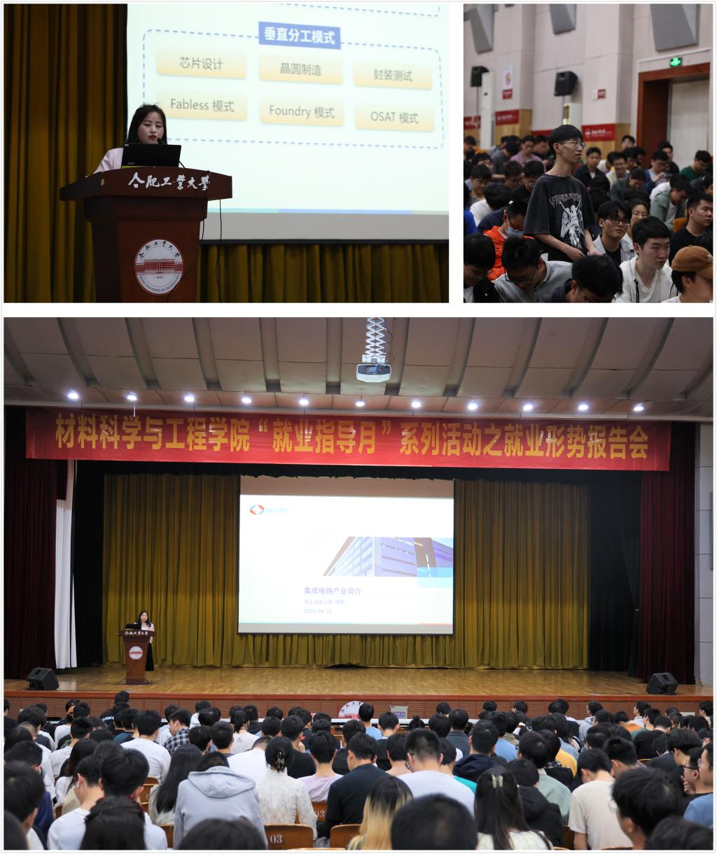 报告会邀请合肥晶合集成电路股份有限公司代工业务三部项目经理杨黎主讲。杨黎以集成电路产业就业形势为切入点,详细分析了集成电路的概念、全球集成电路产业格局、集成电路产业链全景图、全球主要晶圆代工厂制程节点和集成电路行业当前就业形势,向同学们展示了当前集成电路产业蓬勃发展态势和广阔就业前景,号召广大青年学子胸怀工业报国志向,投身集成电路行业,攻坚“卡脖子”技术难题。同时,她鼓励全体同学明确职业发展方向,找准定位、把握机遇,增强就业信心。公司校园招聘负责人张海帆从企业概况、发展历程、业务范畴、薪酬待遇等方面进行了介绍,帮助同学们进一步了解水果派解说、人才需求,进一步认清就业形势,了解相关就业政策。最后,同学们围绕集成电路行业发展方向、企业福利待遇、职业晋升通道等进行了提问,与会企业相关负责人耐心给予解答。