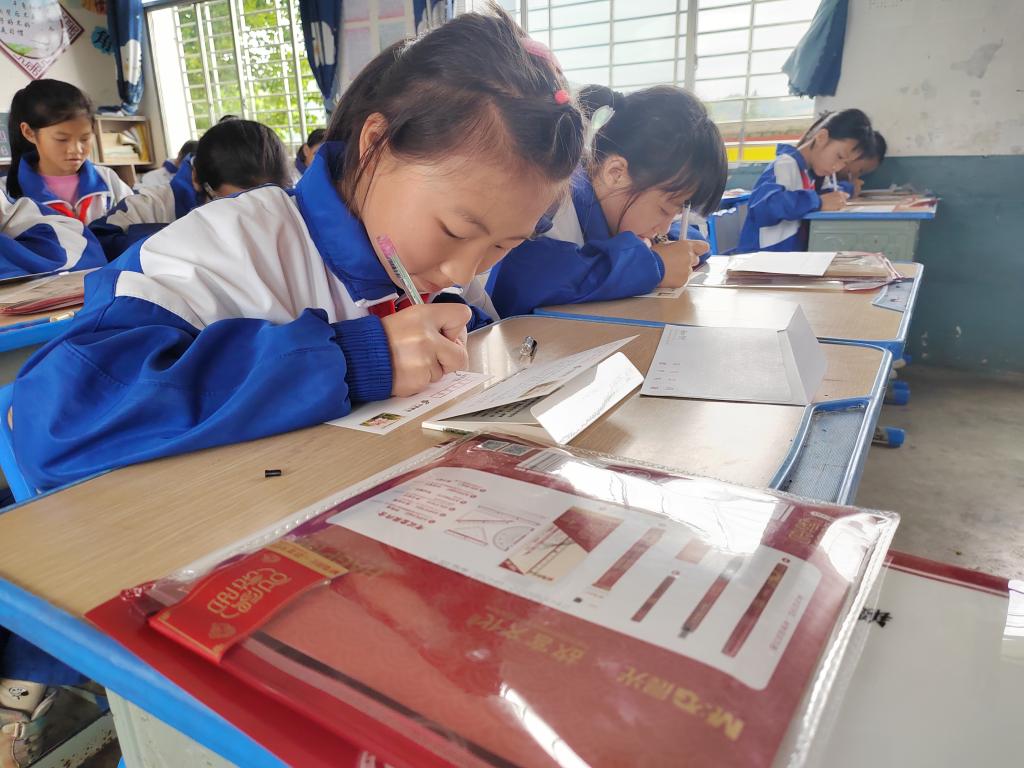 “亲爱的大姐姐,您好!很开心收到你的来信,谢谢您的礼物,我一定会努力学习,并向着水果派解说 的方向努力。”五年级(2)班的王泽微这样说。孩子们收到信件后,主动为大山外的哥哥姐姐们写了回信。信中,长青二小的孩子们大方地介绍了自己以及自己的学校,美丽的丹寨风景,以及学习上困惑的瞬间,回信中或许会有些许错别字,或许语句不是很通顺,但书信中每一个字,每一句话,甚至每一个标点符号,都满载着孩子们的深厚情谊,他们正在用最传统质朴的方式,用最真挚温暖的文字,传递最美好的祝福和问候。