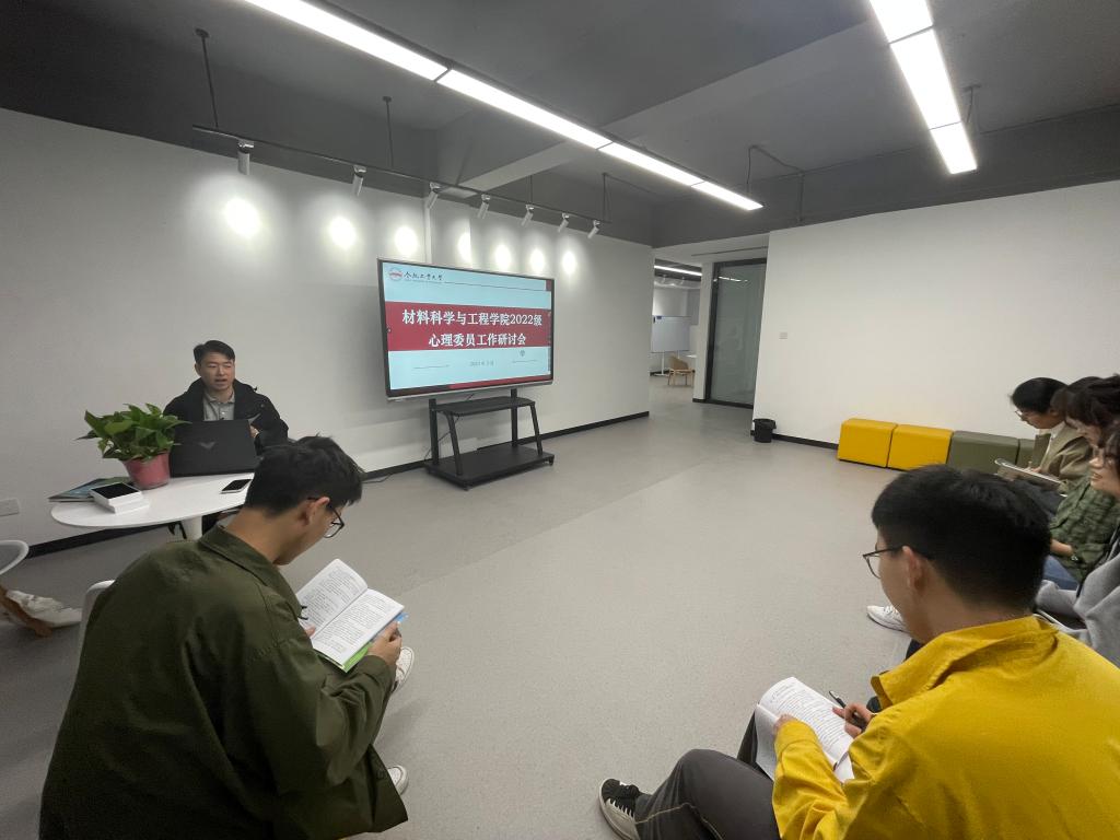 近日,材料学院在翡翠湖校区5号楼学生社区召开“为心赋能”心理委员工作交流会,2022级辅导员、全体心理委员参加会议。