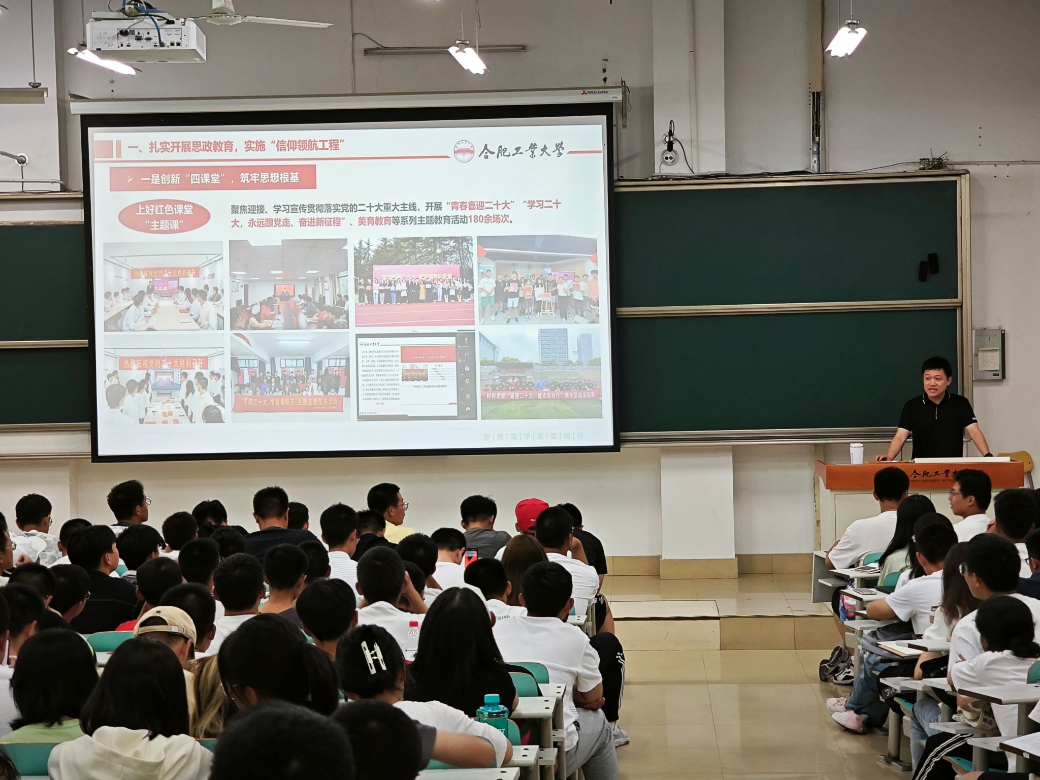 9月18晚,材料学院于一教102教室开展“弘扬青春力量,争做时代新人”新生理想信念教育讲座,学院党委副书记兼纪委书记朱峰为全体2023级同学作报告。