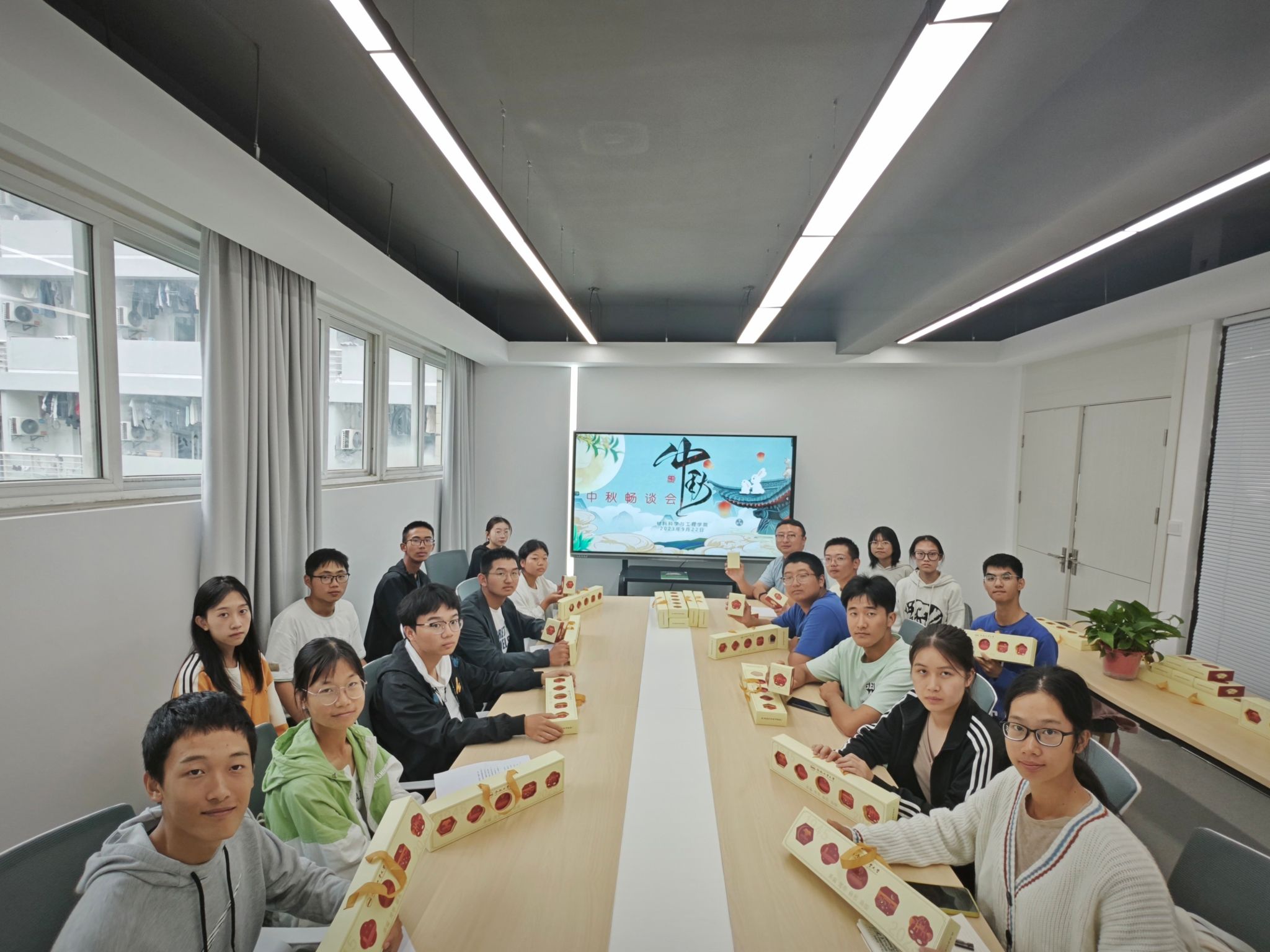 9月22日上午,材料学院于五号楼学生社区举办“情满中秋,爱在工大”中秋畅谈会,为学生分发工大专属月饼、送节日祝福,师生共话家国。材料学院2023级辅导员、学生代表参会。