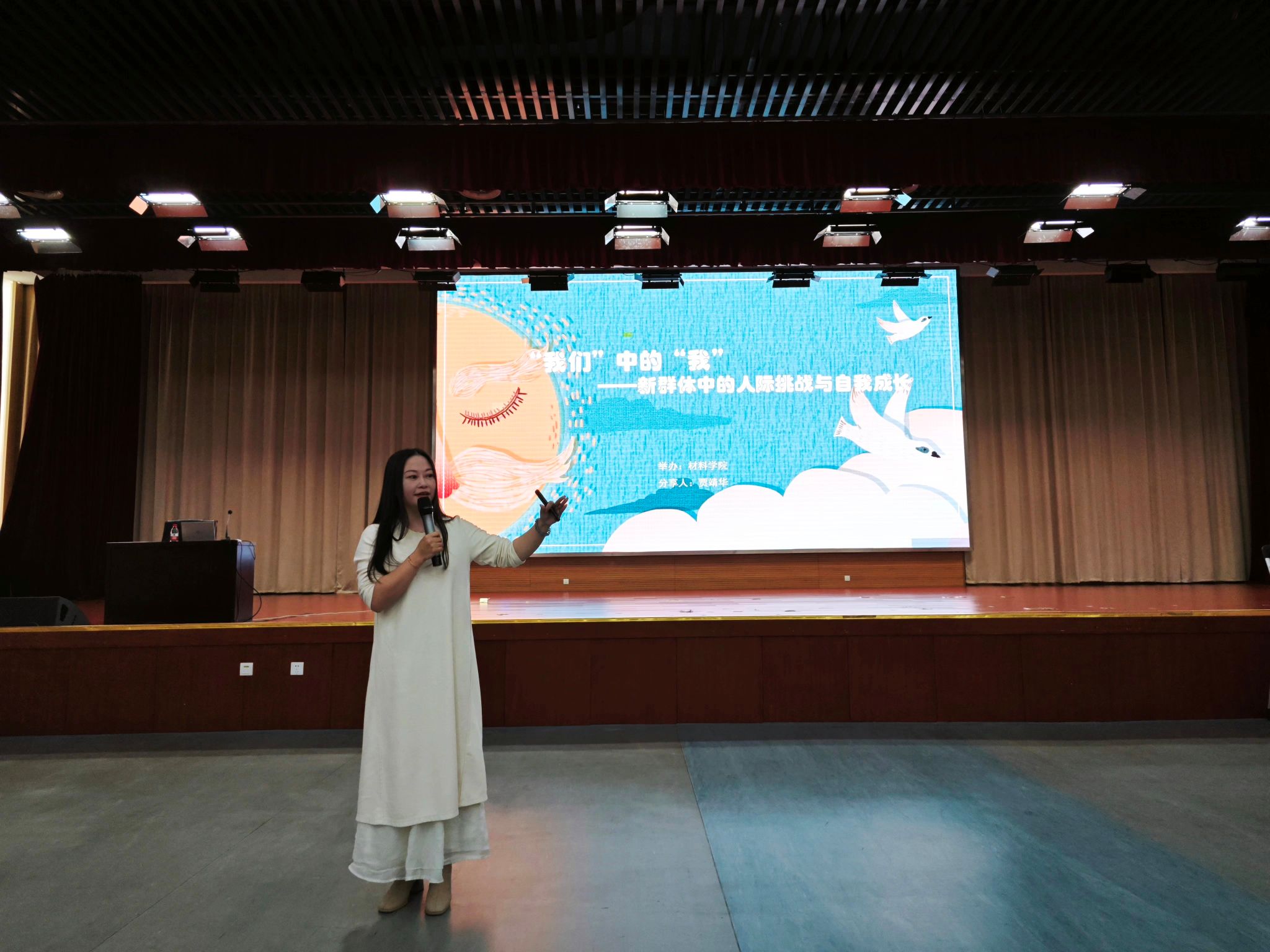 为帮助大一新生更好更快的适应大学生活、转换大学生角色以及正确处理好人际关系,10月12日晚,材料学院于翡翠湖校区科教楼二楼报告厅为新生开展新群体中人际关系处理主题报告会。报告特邀请心应用心理学博士贾靖华老师,报告主题为“从‘我’到‘我们中的我’——新群体中的人际挑战与自我成长”。