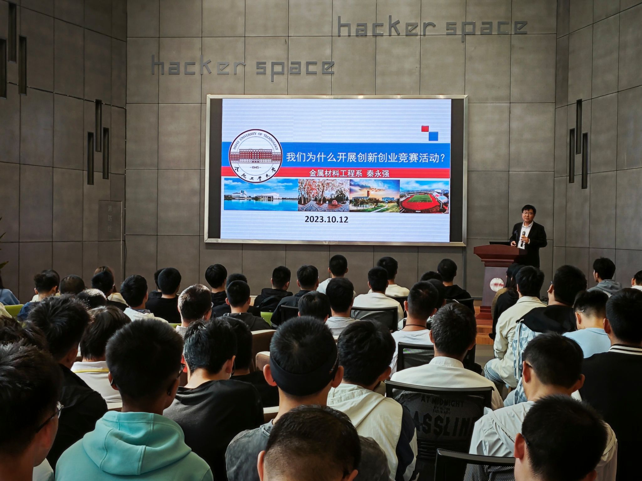 参观结束后,同学们来到了大数据中心宣讲厅,观看了“未来已来,为你而来——水果派解说 双创教育掠影宣传片。紧接着金属材料工程秦永强老师结合学校第二课堂成绩单制度中科技创新板块为所有同学讲授了关于金属材料工程专业相关创新创业与学科竞赛项目,同学们纷纷表示受益匪浅。