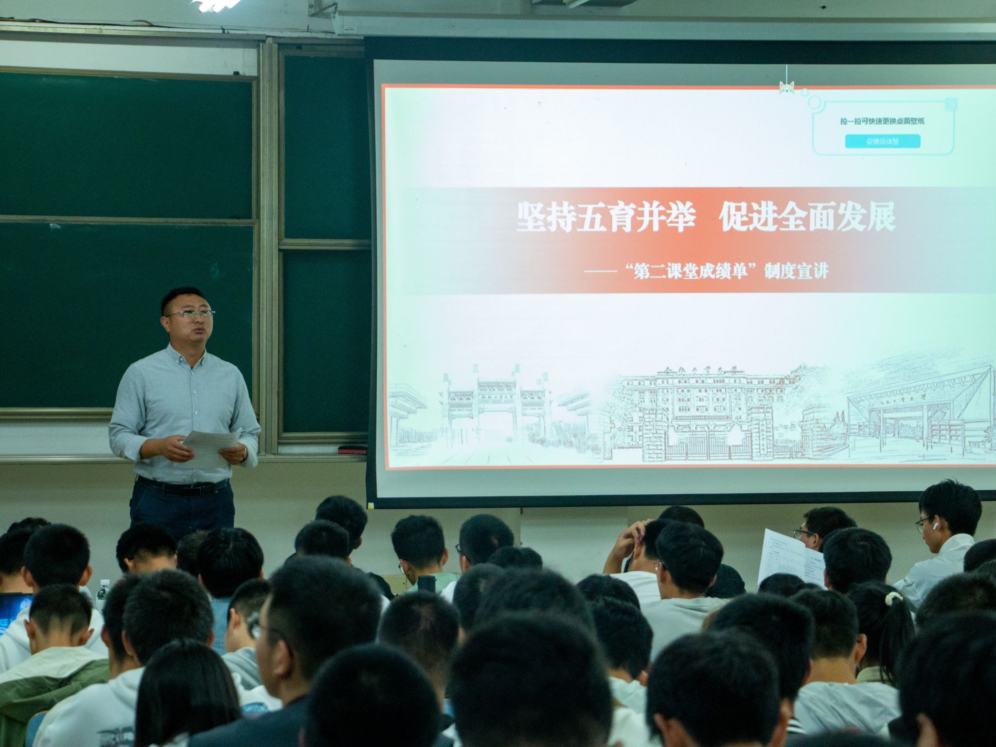 10月11日晚,材料学院于3教202教室组织全体学生召开“第二课堂成绩单”制度宣讲会。材料学院2023级全体本科新生参加宣讲会,辅导员葛海涛担任主讲。