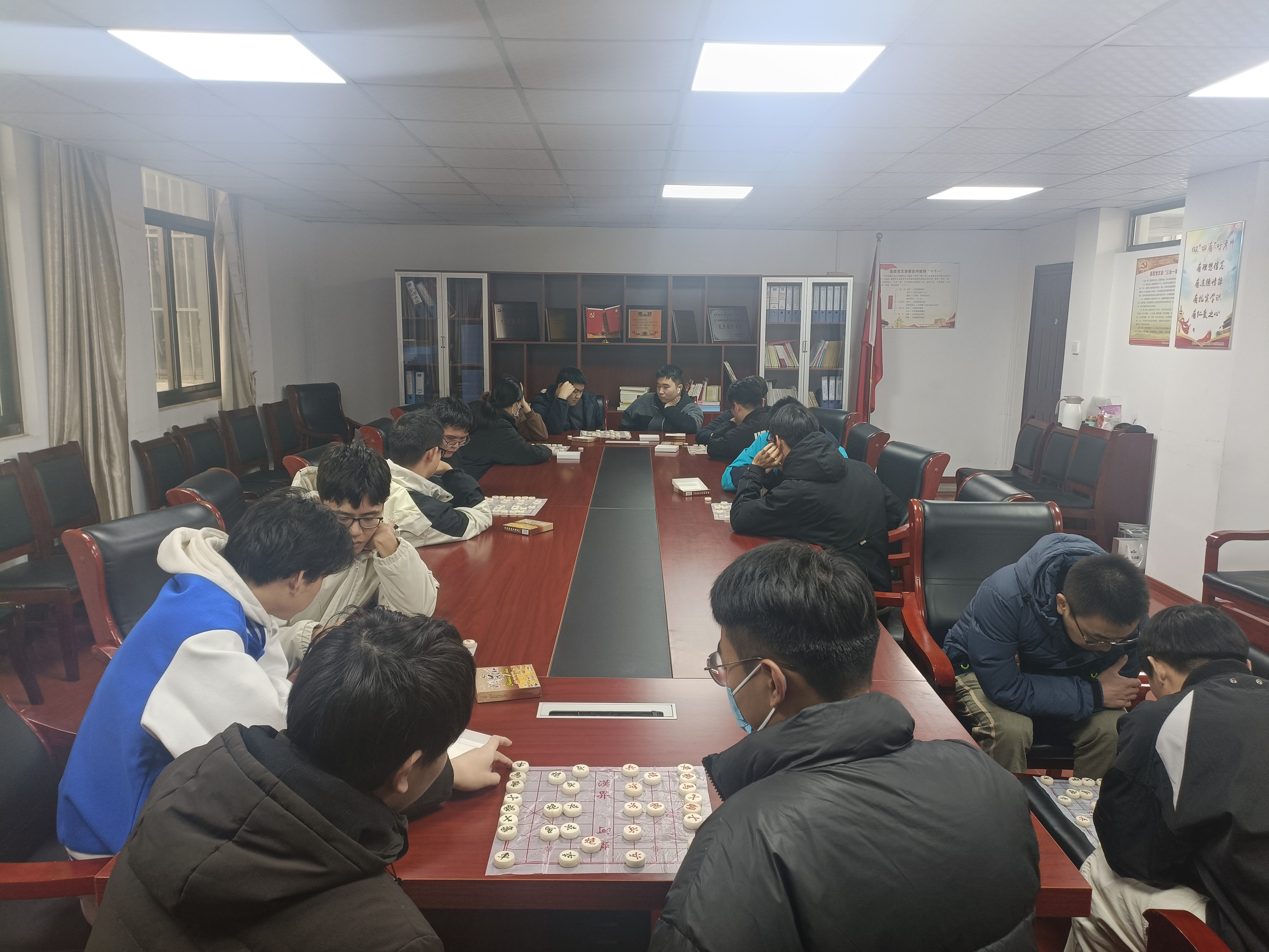 材料学院于12月3日在材料楼党员之家举办了一场以“纹屏乐道,乐在棋中”为主题的精彩象棋比赛。