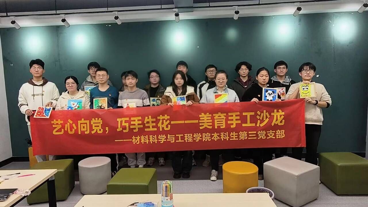 为加强美育培养,帮助同学们释放压力,提高动手能力,培养积极心理品质,1月7日,材料学院本科生第三党支部携手学院心晴社在翡翠湖校区二号楼学生社区组织开展“艺心向党,巧手生花”手工沙龙活动,支部十余名党员同志参与。
