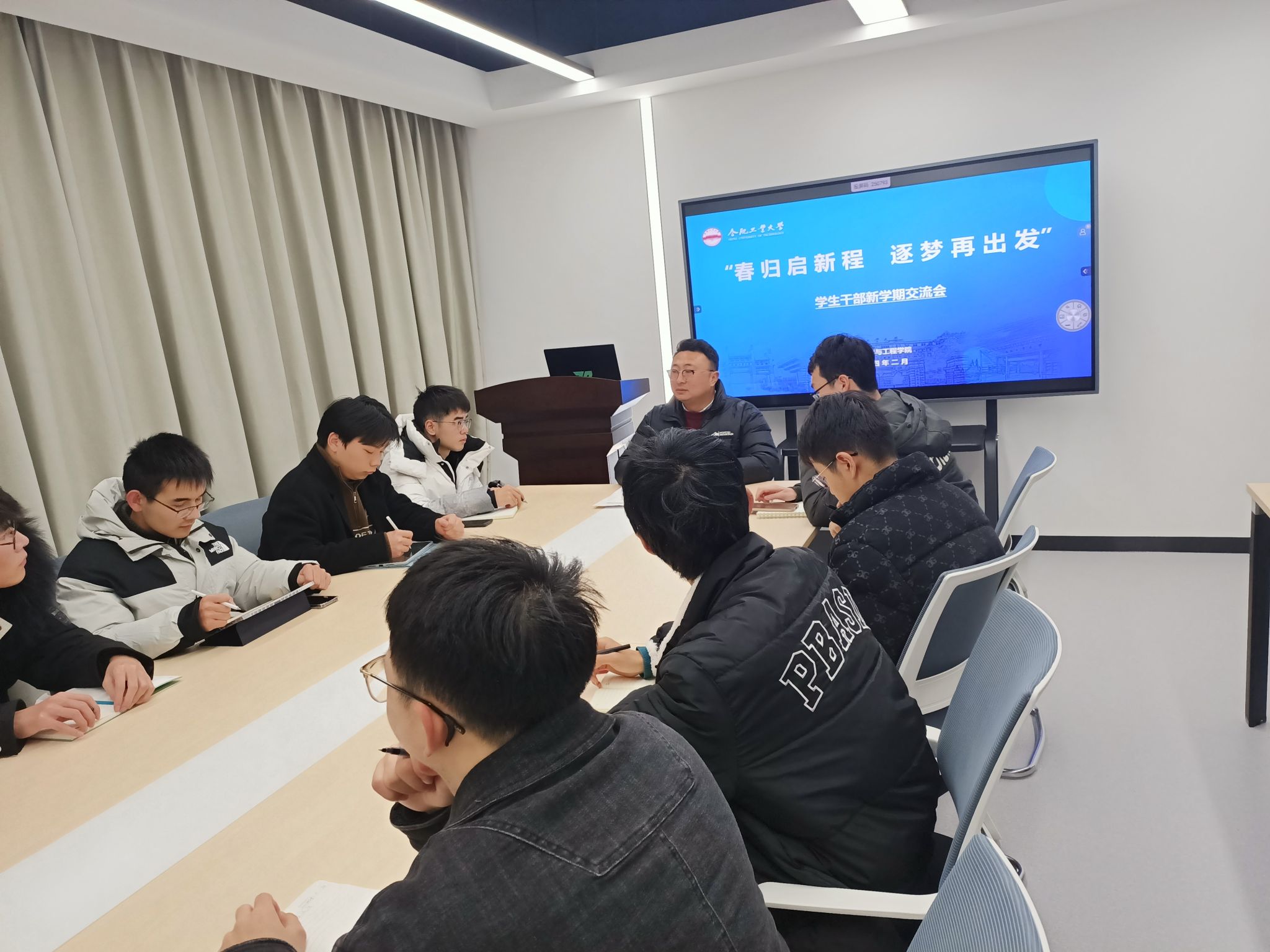 2月26日晚,材料学院组织2023级主要学生干部于翡翠湖校区四号楼学生社区会议室召开“春归启新程,逐梦再出发”学生干部新学期工作交流会。