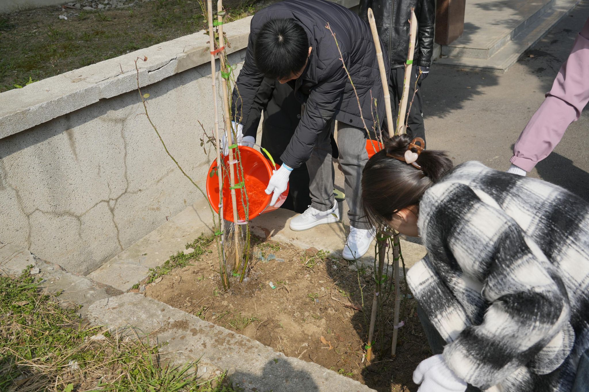 时值仲春,万木生发。在全国第46个植树节当天,材料学院机关党支部和本科生第二党支部师生在材料楼花圃前共同开展了栽培月季的植树活动。学院党委相关负责人参加了植树活动。