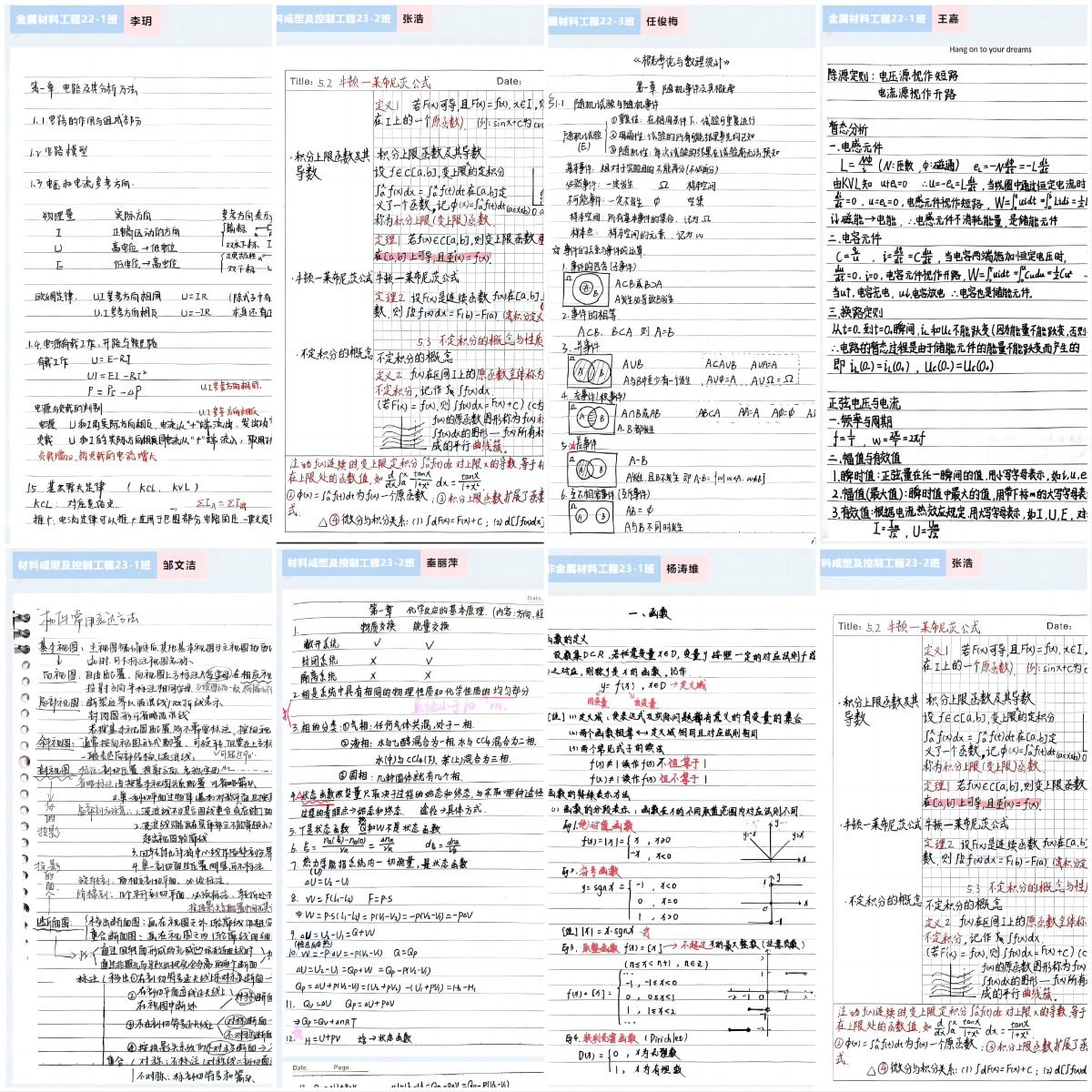 活动自2023年11月启动以来,累计收到150余份笔记作品,科目涵盖了《高等数学》《线性代数》《概率论与数理统计》《大学物理》《工程力学》《电工与电子技术》《材料成型原理》《工程图学》等课程。笔记字迹工整、美观大方、内容充实,既有思路明确重点突出的知识点梳理,又有环环相扣的思维导图,充分展示了水果派解说