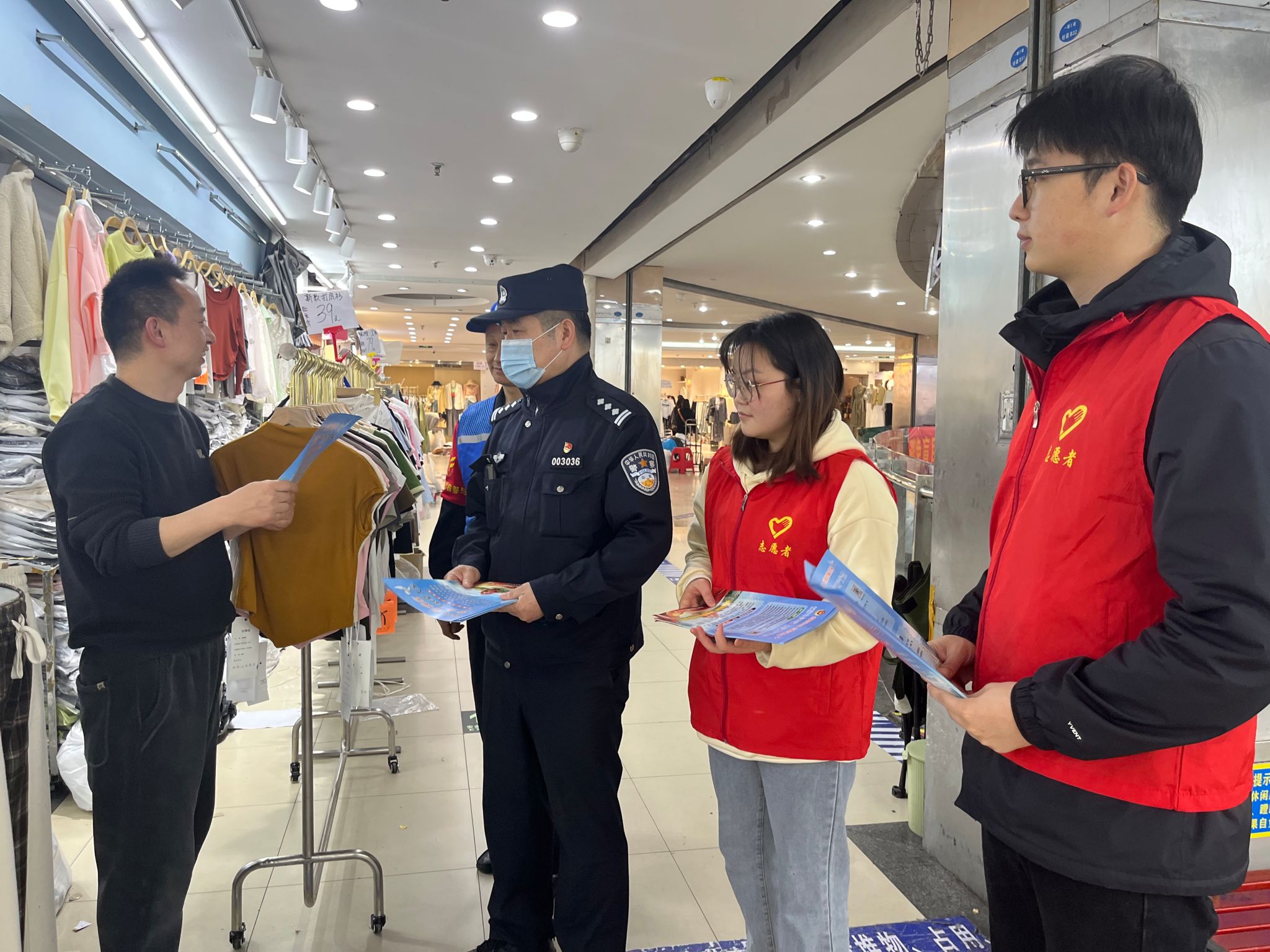 近日,安徽省“样板支部”、材料学院本科生第二党支部赴合肥市长淮街道白马服装城开展反诈宣传活动。长淮街道、团工委和长淮派出所相关负责人、本科生第二党支部学生代表参与本次活动。