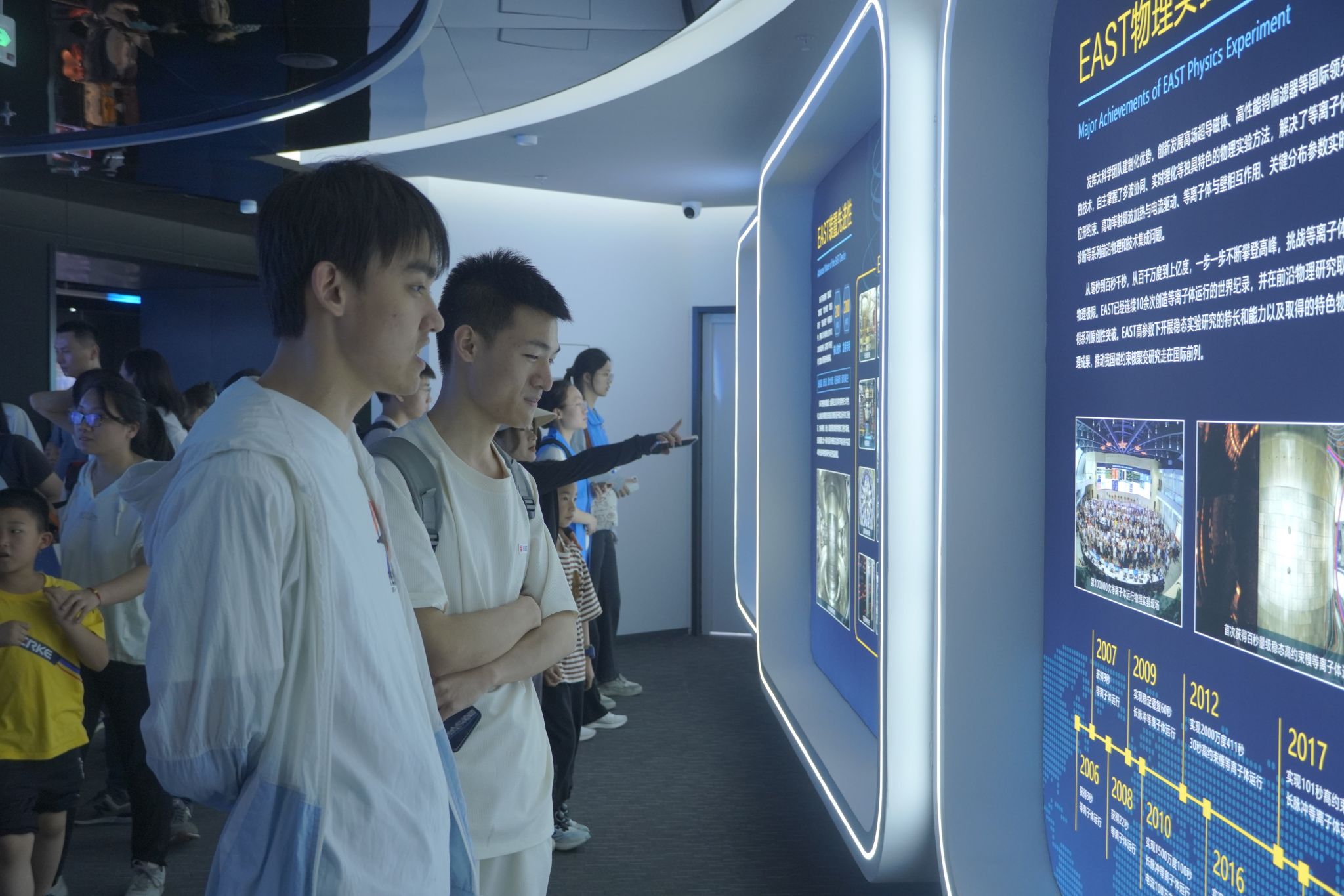 活动现场共设立28个科普点,124个科普项目和13场系列科普报告,充分展现了科技创新的力量。学员们集中参观了聚变创新展览馆、1/8真空室、聚变遥操作测试平台。在聚变创新展览馆中,结合沉浸式数字沙盘、立体全息影像、立体形象宣传影片等技术和模型,学员们了解核聚变发展的历程和前景。通过实地走访、实景参观、观摩大型设备,同学们深入学习了解前沿科学技术,拓宽了学术视野,增强了投身科技创新中的动力和责任感。