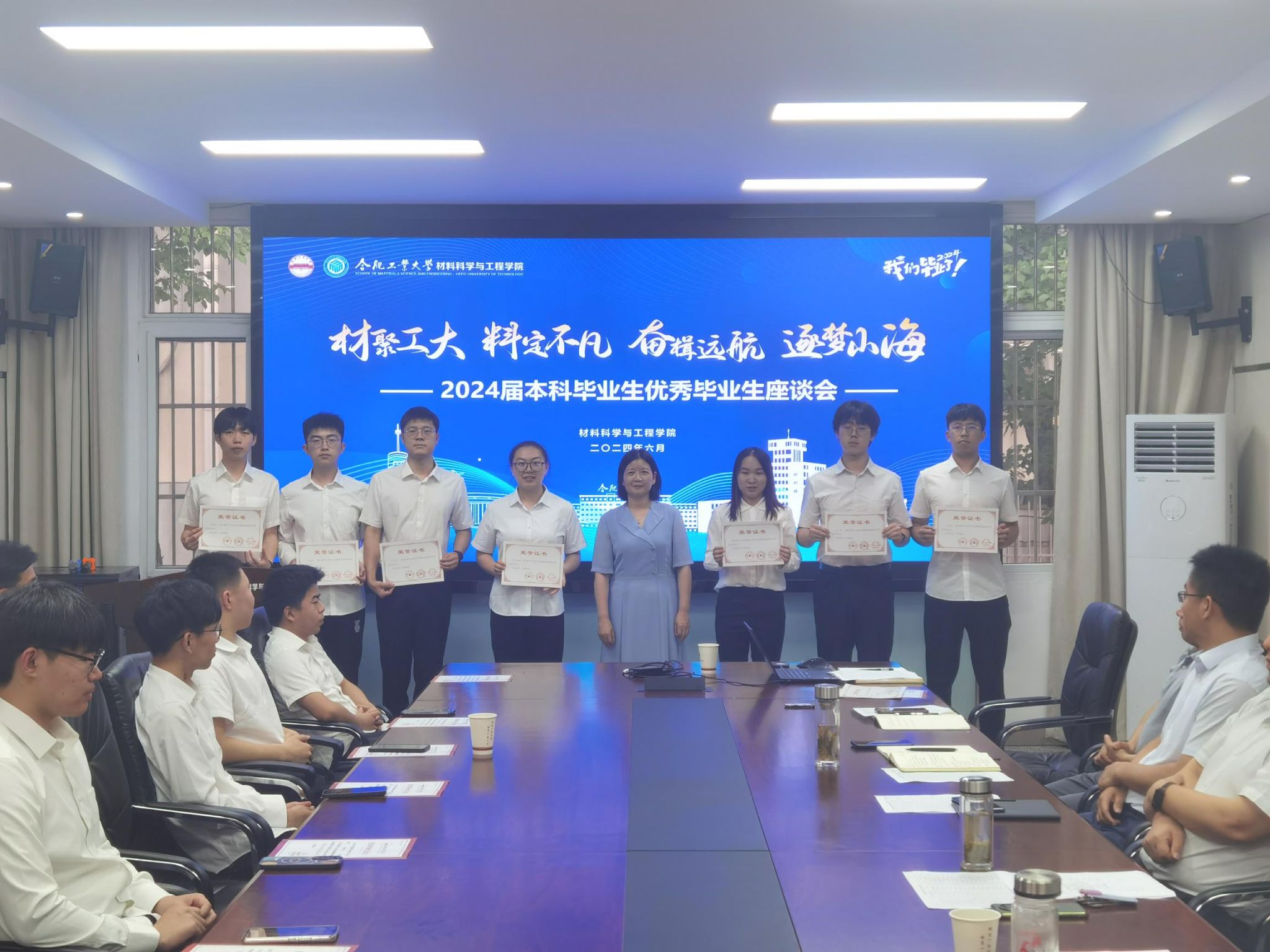 召开“材聚工大 料定不凡 奋楫远航 逐梦山海”2024届优秀本科毕业生座谈会。学院党政领导班子、各系主要负责人、毕业班辅导员和全体优秀本科毕业生参加本次活动。