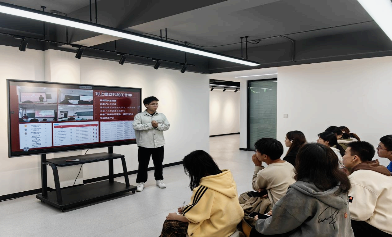 会上,班团建设中心负责人对团支书提出提高自身政治思想觉悟,注重理论和实践相结合等工作要求,明确了团支书的工作职责并重点讲述了三会两制一课、智慧团建实践录入等工作内容。紧接着,2023级优秀班干代表张瑞龙、刘本凯和冯嘉辰同学分别就团支书工作和班长工作进行了经验分享。张瑞龙同学就班级团日活动开展方法、班级凝聚力提升以及学习与工作平衡问题进行了经验分享;班长代表刘本凯和冯嘉辰同学则侧重于班级管理方法、班长工作心态和班级事务分配进行阐述。三人的经验分享均具有针对性、科学性与可行性。新生班级班长及团支书纷纷表示受益匪浅,同时他们也积极踊跃地提问请教,现场氛围十分融洽。
