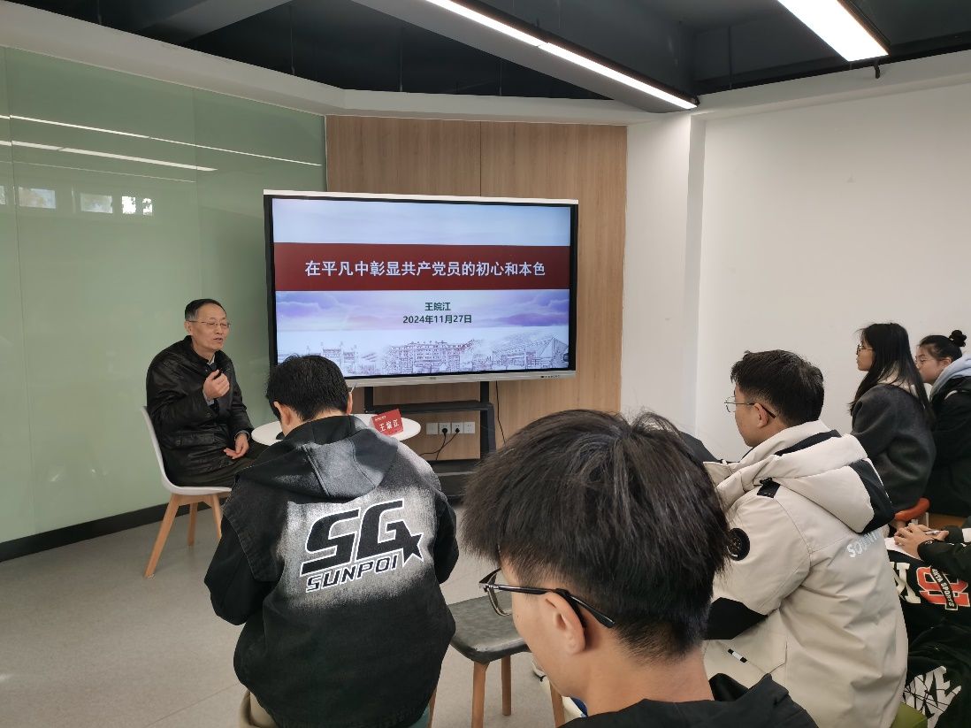 本科生第二党支部在屯溪路校区五号学生社区沙龙空间组织开展了“我听师长讲党史”主题沙龙。校关工委常务副主任王皖江、学院本科生第二党支部学生代表20余人参加本次沙龙。