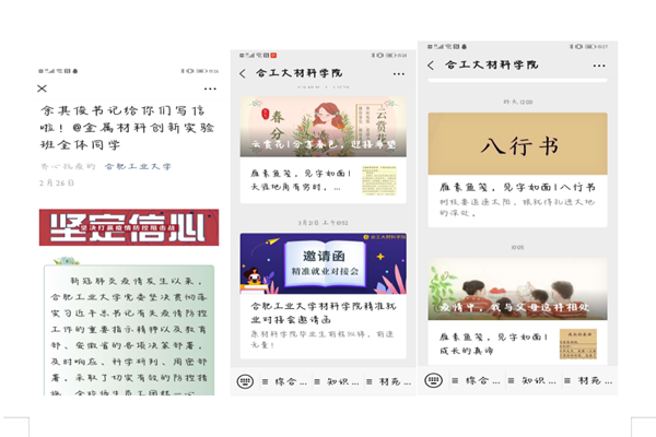 在疫情持续的三个月里,材料学院积极协调各方力量,努力克服各种困难,不折不扣完成上级党委的各项部署和要求,用扎实的工作不断践行职业初心和使命。疫情期间,学院通过各种渠道为抗疫自愿捐款的同学达到606人,捐款共计约44470元。学生中不断涌现出感人的事迹,像18级捐出全额国家奖学金的吴修佳、从海外不远万里为学院捐赠口罩的孟令孜、在家乡主动担任抗疫志愿近160个小时的金邺城等等,他们的事迹先后获得中新网和合工大官网的报道。