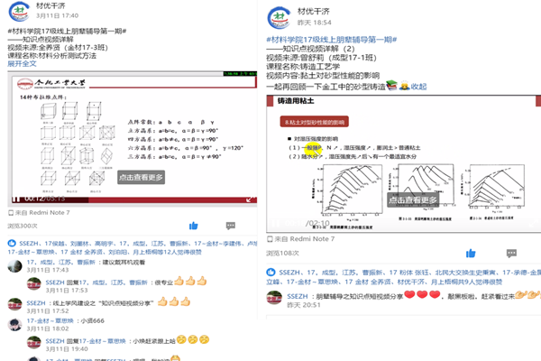 为贯彻落实学校对新冠肺炎疫情防控工作部署,积极响应学校“学雷锋”志愿服务月活动要求,做好疫情期间线上教学服务,结合实际开展朋辈帮扶,自新学期线上授课伊始,材料学院依托各类网络平台持续开展“材优干济”系列学风建设活动。营造良好的线上学习氛围,引导学生端正学习态度、及时互助答疑解惑、提升自主学习能力,助力良好学风形成。