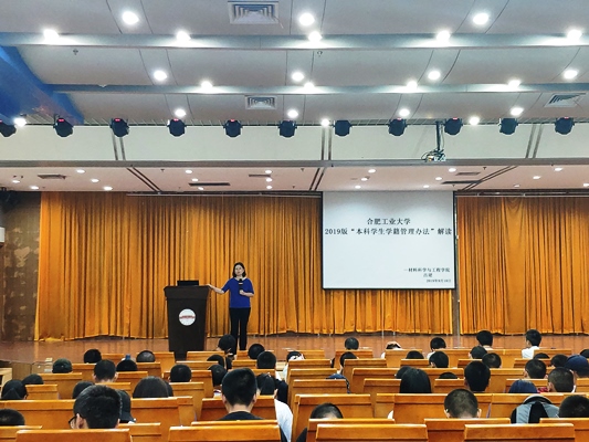 入学教育期间,为了让新生和家长能尽快了解“第二课堂成绩单”制度,给新生和新生家长最及时最清晰的解答,材料学院党委书记程继贵在8月29日下午新生家长见面会和9月12日的开学典礼上,面向家长和新生对学院各学科专业的学科构建、课程体系、就业发展和“第二课堂成绩单”制度在水果派解说