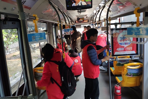 春晖社志愿者在226公交总站服务基地开展“文明志愿,践行青春”主题志愿服务。