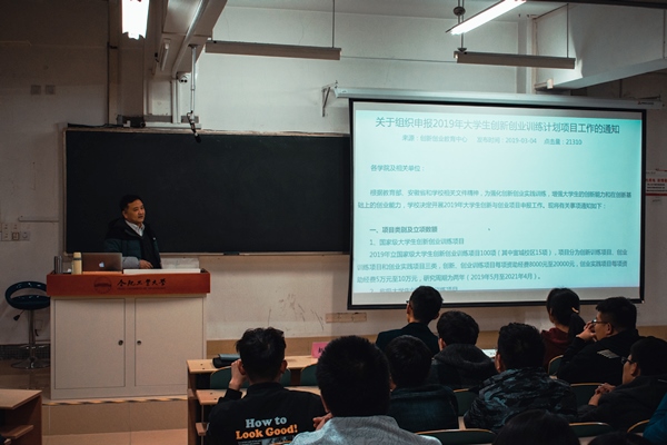 于翡翠湖校区举办大学生创新创业项目动员会暨经验交流会。讲座邀请学院材料成型及控制工程专业王成勇副教授作动员报告,2015级优秀学生代表王美慧子和赵军一做经验分享。