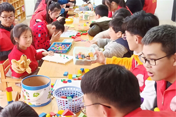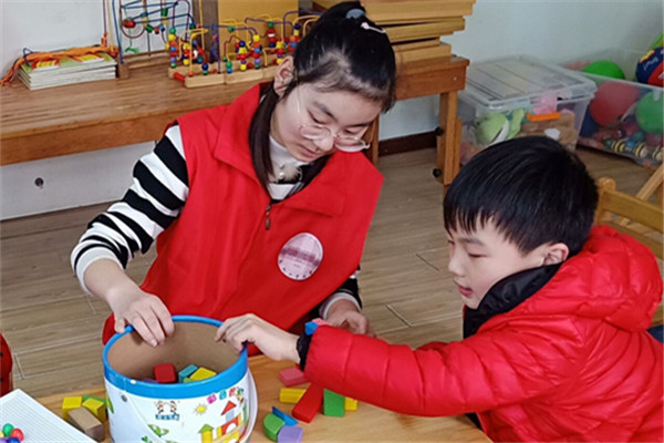 到达康复中心后,志愿者们配合工作人员摆放好桌椅和玩具,等待孩子们的到来。孩子们看到桌上的各类玩具时显得非常兴奋,孩子们就坐后,志愿者们进行了分组协作教学,有的教孩子们写字,有的教孩子们算算数,有的教孩子们堆积木;志愿者们的悉心教导和耐心陪同,使得孩子们在快乐中收获知识,也让这群可爱又特殊的孩子们感受到了社会的温暖和关爱。
