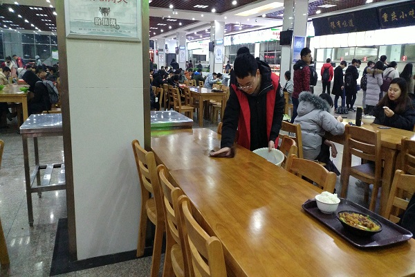 12月25日下午,材料学院春晖社志愿者在翡翠湖校区第三食堂、第四食堂开展志愿服务活动。