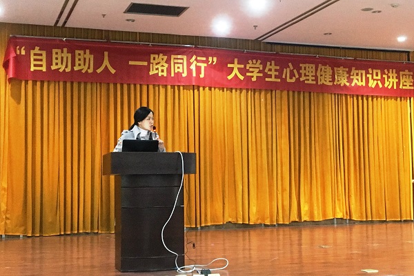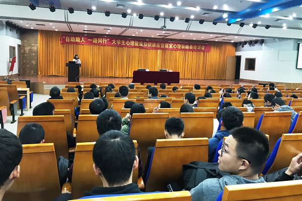 在翡翠湖校区图书馆报告厅举办“自助助人·一路同行”大学生心理健康知识讲座暨心理联络员培训会。材料学院全体2018级心理委员、寝室心理联络员及全体新生参加培训会。