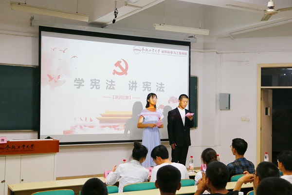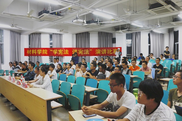 于9月16日晚在十号教学楼205室举办了“学宪法,讲宪法”主题演讲比赛。2017级材料学院辅导员陈凤舞老师,2018级材料学院辅导员刘琬菁老师,以及材料学院第四十届学生会主席团成员,作为评委出席本次活动。