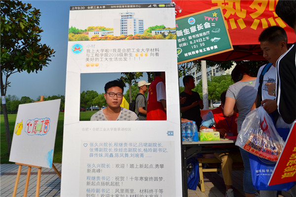迎新当天,67名身穿红色马甲佩戴红色帽子的志愿者在建艺馆、图书馆、校医院、宿舍楼、综合楼等地来回奔波。炎炎烈日,他们汗流浃背,但从未抱怨,他们以自己的实际行动为新生上了生动的一课,他们有一个共同的名字——春晖社。迎新期间,他们从路线指引、信息咨询到行李搬运,志愿者们的辛勤付出和微笑脸庞,让新生感受到了青春的正能量,一幕幕温馨感人的迎新画面在校园里真情呈现。迎新结束了,新生家长群内被同一个消息刷屏了,家长亲切的说道“非常感谢迎新志愿者给我们提供的热情周到的服务和不厌其烦的解释工作,让孩子们能够顺利办理入学手续,也希望新一届的学子能像你们一样充满正能量,让合工大精神在学子身上代代传承。”