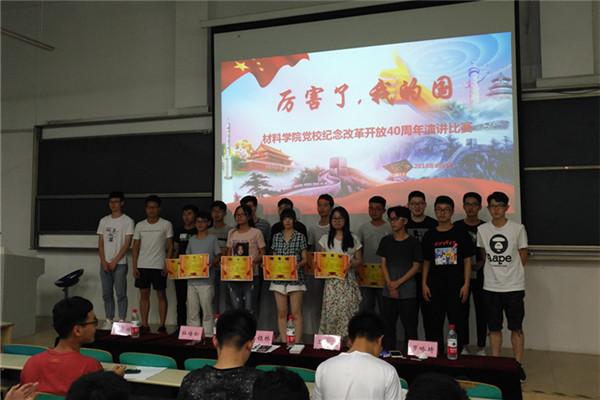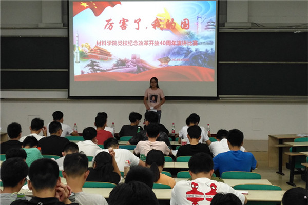 6月8日晚,材料学院党校为庆祝改革开放40周年,于翠2教201教室组织开展“厉害了!我的国”主题演讲比赛,党校第59期入党积极分子班全体成员参与了此次活动。