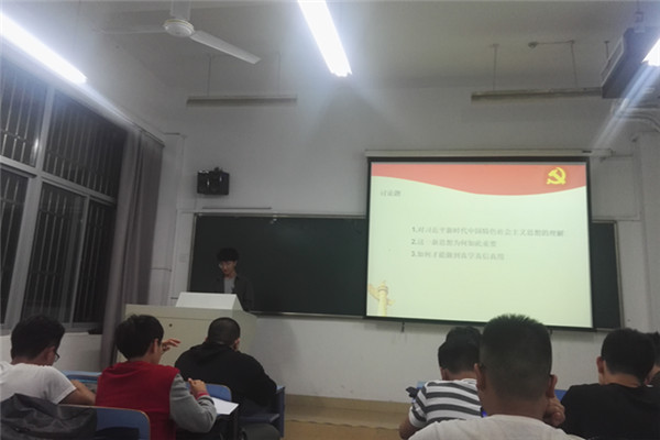 学习讨论活动分两个环节开展,第一环节集中学习就“八个明确”、 “14个坚持”等内容开展了主题学习。第二个环节就当代大学生如何贯彻落实习近平新时代中国特色社会主义思想等相关内容展开了激烈讨论和交流。对于“当代大学生如何贯彻落实习近平新时代中国特色社会主义思想的理解和把握”这个问题上,靳仁冬同学给出了这样的理解,他认为习近平新时代中国特色社会主义思想,丰富和发展了中国特色社会主义理论体系,同时这也是我们从大国迈向强国的理论。紧接着,学员班其他学员也就自身的学习和理解纷纷发言,翟梦圆同学这样说:“习近平新时代中国特色社会主义思想是我国发展达到一个新高度时期,凝聚了全党、全国智慧而提出的思想理论体系。这一思想总结了我国多年来的发展经验,详细针对了我国社会现存的各类问题,有效地指导着全体党员、全国人民在民族复兴的中国特色社会主义道路上砥砺前行。翟梦园同学说:“习近平新时代中国特色社会主义思想”深刻回答了国内外形势发生变化和我国各项事业发展起来后,中国共产党举什么旗、走什么路、以什么样的精神状态、担负什么样的历史使命、实现什么样的奋斗目标等一系列重大问题。开创了马克思主义中国化的新境界,体现鲜明的继承性、创新性、时代性、指导性,是我们党坚定不移地走中国特色社会主义道路的科学指南”。